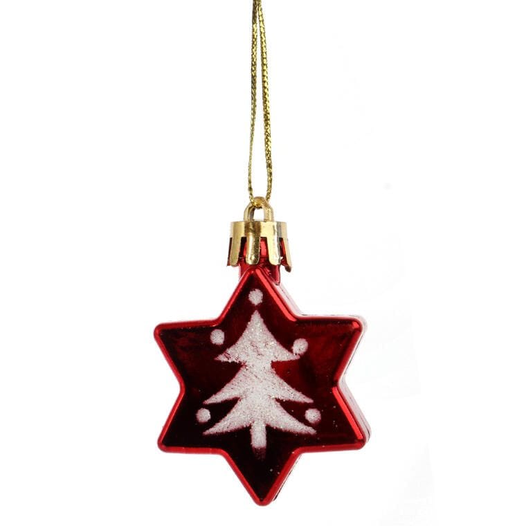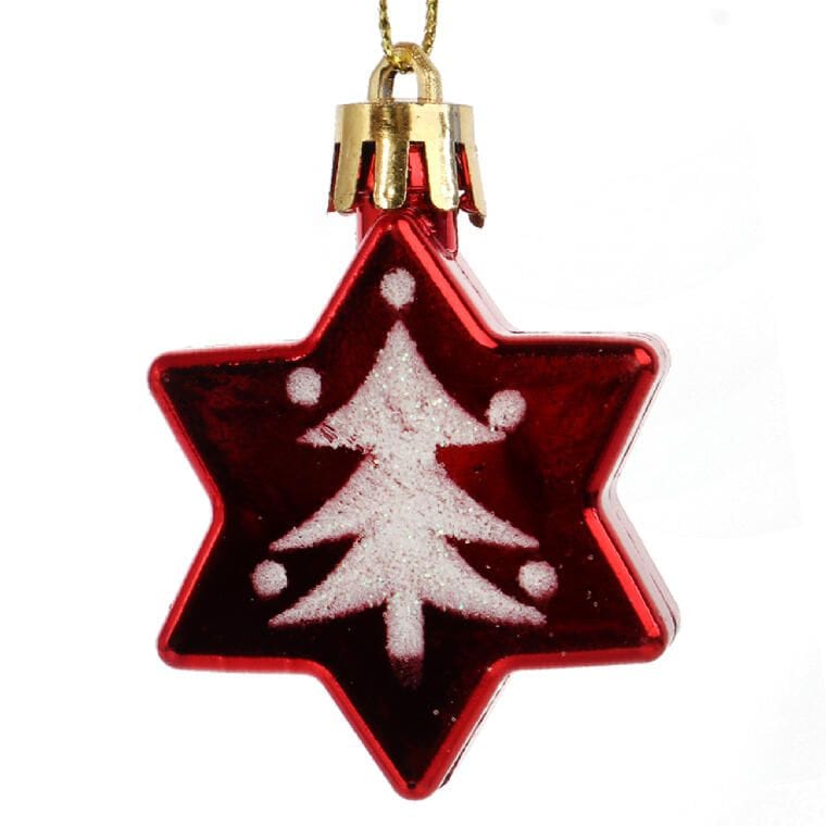 Komplet 5 plastikowych bombek w kształcie gwiazdek z choinkowym motywem to wyjątkowa dekoracja świąteczna, która doskonale sprawdzi się zarówno na choinkach, jak i w girlandach czy stroikach, wprowadzając świąteczną atmosferę do każdego wnętrza. Te eleganckie, czerwone ozdoby o wielkości 5 cm dodadzą natychmiast ciepłego, radosnego klimatu, idealnie komponując się z innymi świątecznymi dekoracjami. Wykonane z trwałego materiału, bombki są lekkie, nietłukące i gwarantują długą żywotność, co czyni je idealnym wyborem do wielokrotnego użytku w świątecznych aranżacjach.