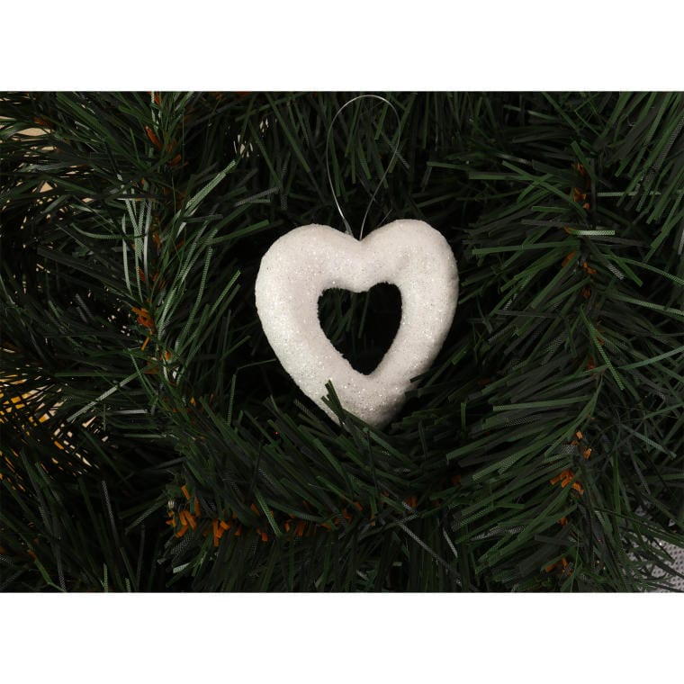 Komplet 6 serduszek zawieszek styropianowych w kolorze białym opalizującym to elegancka dekoracja, która doskonale sprawdzi się w różnych aranżacjach. Każde serduszko, o wymiarach 5,5 cm, emanuje subtelnym blaskiem, dzięki czemu wprowadza do wnętrza wyjątkowy, romantyczny klimat.