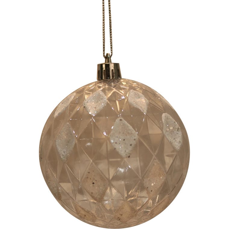 Komplet 6 bombek plastikowych, przeźroczystych, ozdobionych urokliwym śnieżnym dekorem. Idealne do dekoracji choinki lub innych świątecznych aranżacji. Pakowane w praktycznym boksie PVC, co ułatwia przechowywanie. Średnica bombek wynosi 8 cm.