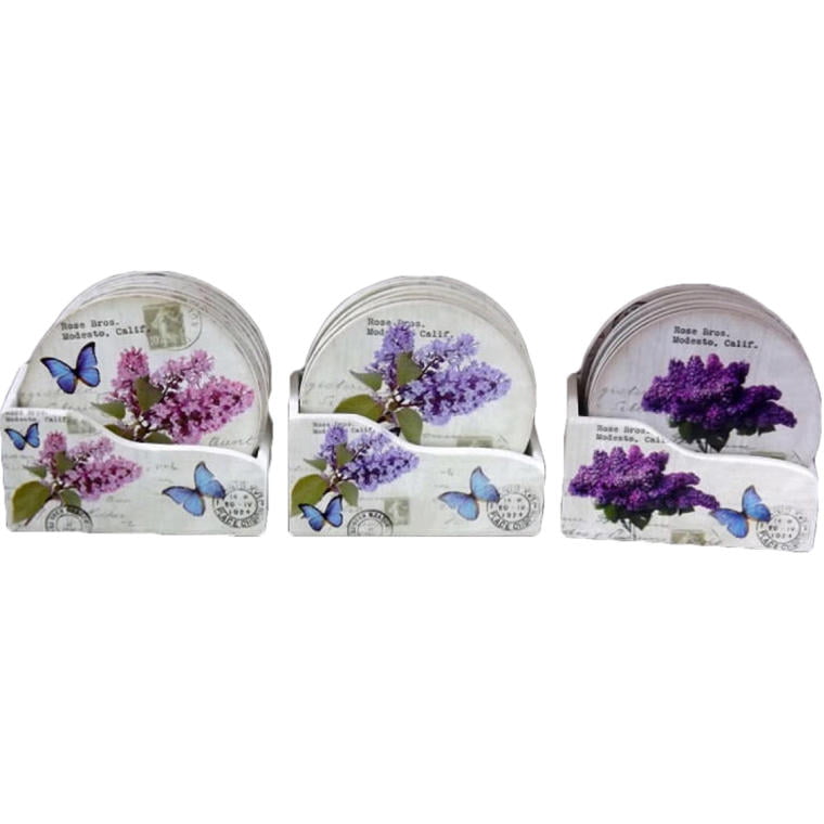 Komplet 6 drewnianych podkładek pod filiżankę z kwiecistym wzorem