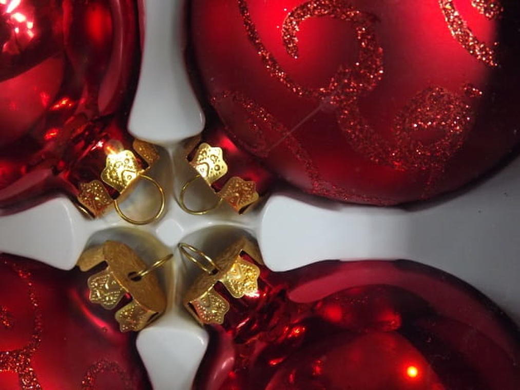 Komplet 6 Eleganckich Bombek Choinkowych 80mm w kolorze Czerwonym – Trzy z Połyskiem, Trzy Matowe z Srebrnym Brokatem