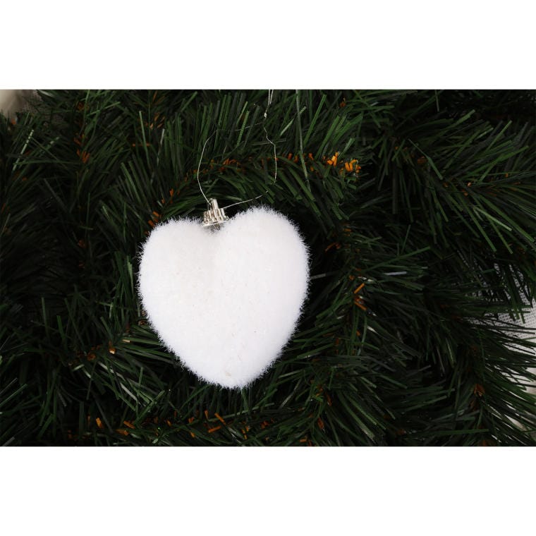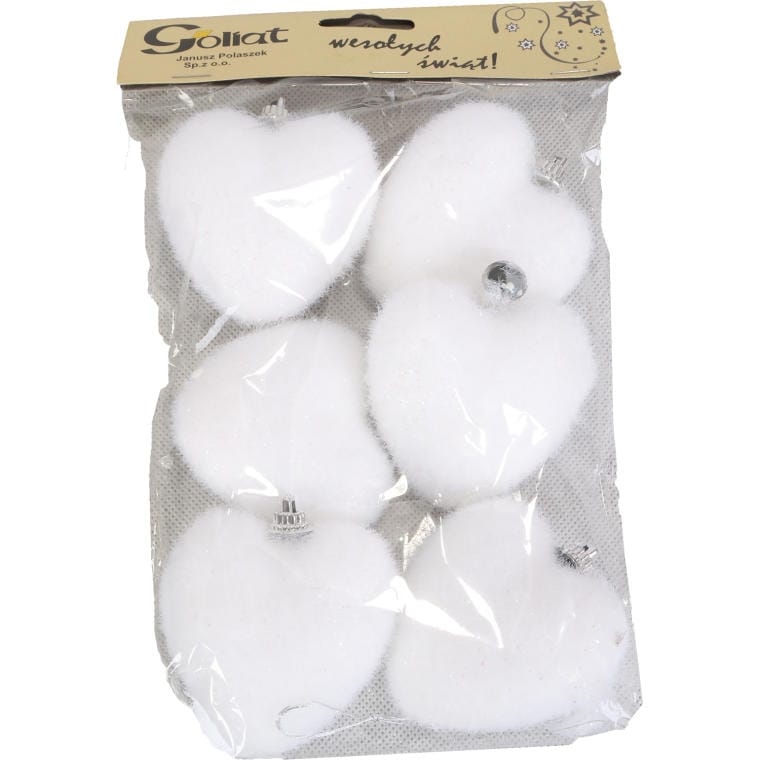Komplet 6 flokowanych serc zawieszek 6.5 cm