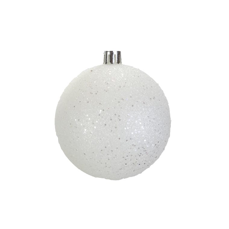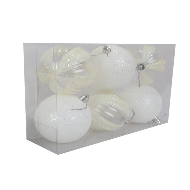 Komplet 6 Przeźroczystych Bombek Plastikowych z Białym Brokatem, 8 cm