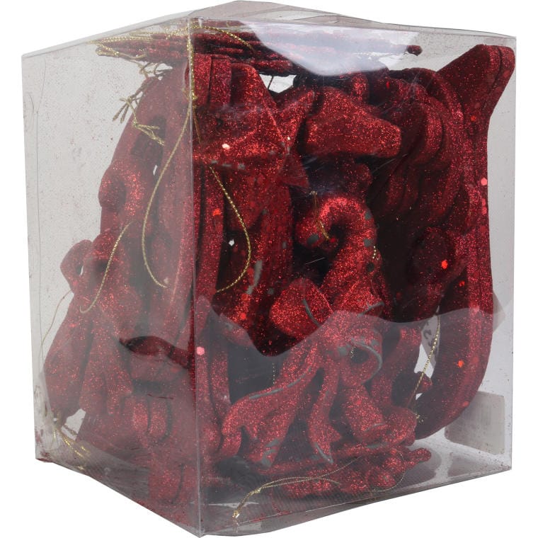 Zestaw 65 brokatowych zawieszek w czerwonym kolorze to idealna propozycja na udekorowanie choinki, wnętrza domu czy świątecznych stroików. Każda zawieszka zachwyca eleganckim blaskiem, dzięki czemu wspaniale odbija światło i dodaje świątecznym dekoracjom wyjątkowego uroku. Zawieszki wykonane są z trwałego materiału i zapakowane w praktyczny, przezroczysty boks PVC, który ułatwia ich przechowywanie i chroni przed uszkodzeniem. Intensywny czerwony kolor, w połączeniu z subtelnym brokatem, doskonale komponuje się zarówno z tradycyjnymi, jak i nowoczesnymi aranżacjami świątecznymi, wprowadzając do wnętrza ciepło i blask. Ten komplet jest świetnym wyborem na ozdobienie choinki lub dodanie elegancji do świątecznych dekoracji.