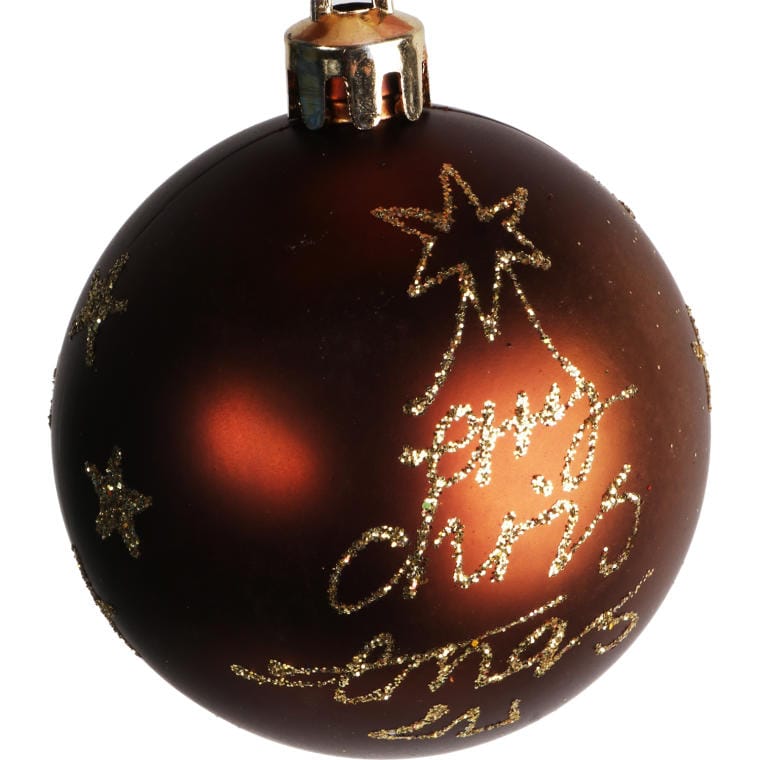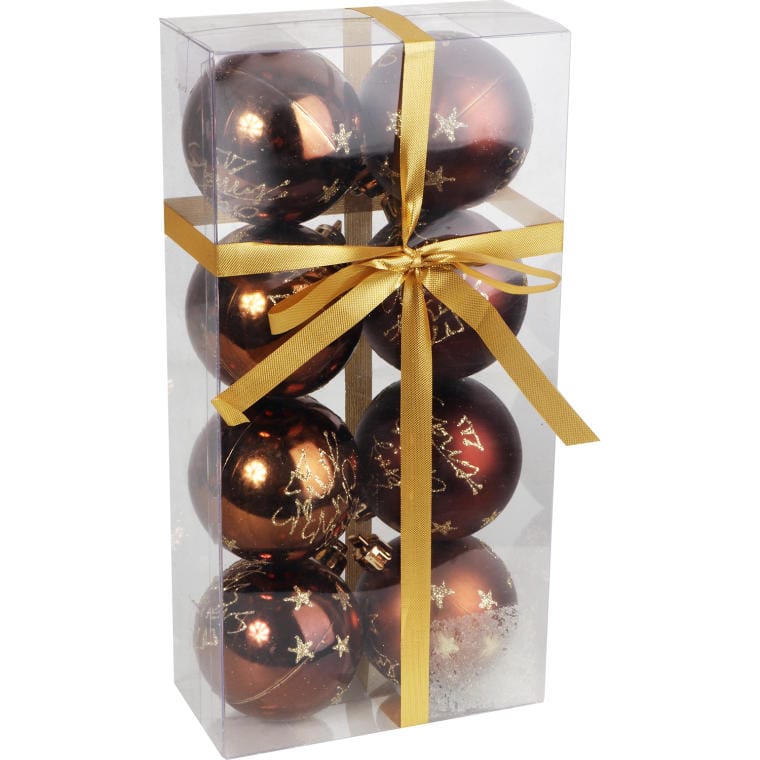 Komplet 8 Brązowych Dekorowanych Bombek Plastikowych o Średnicy 6 cm