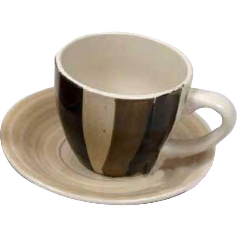 Komplet Brązowej Filiżanki z Talerzykiem w Paski