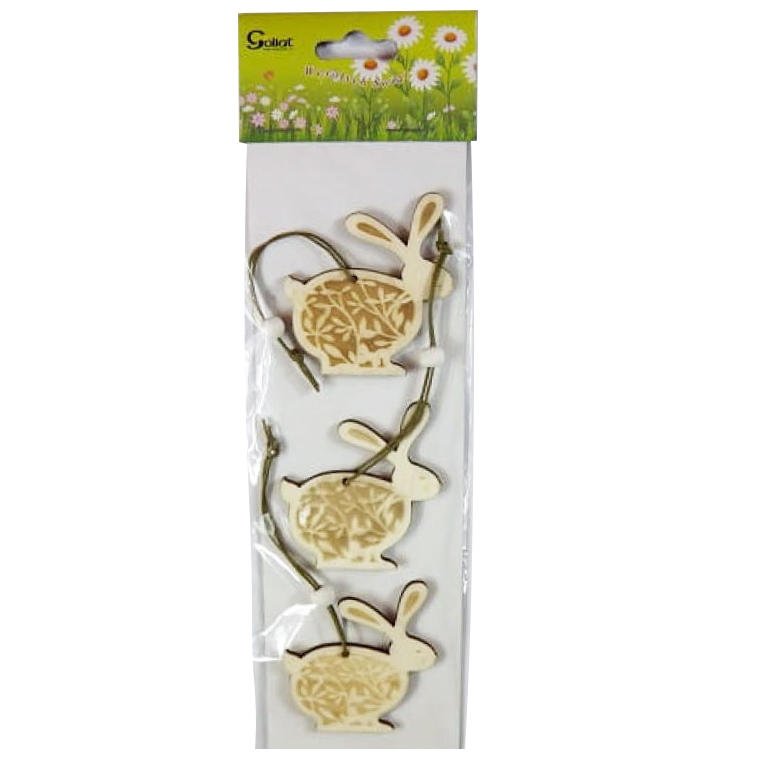 Komplet Trzech Drewnianych Zawieszek w Kształcie Zajączków Koloru Brązowego