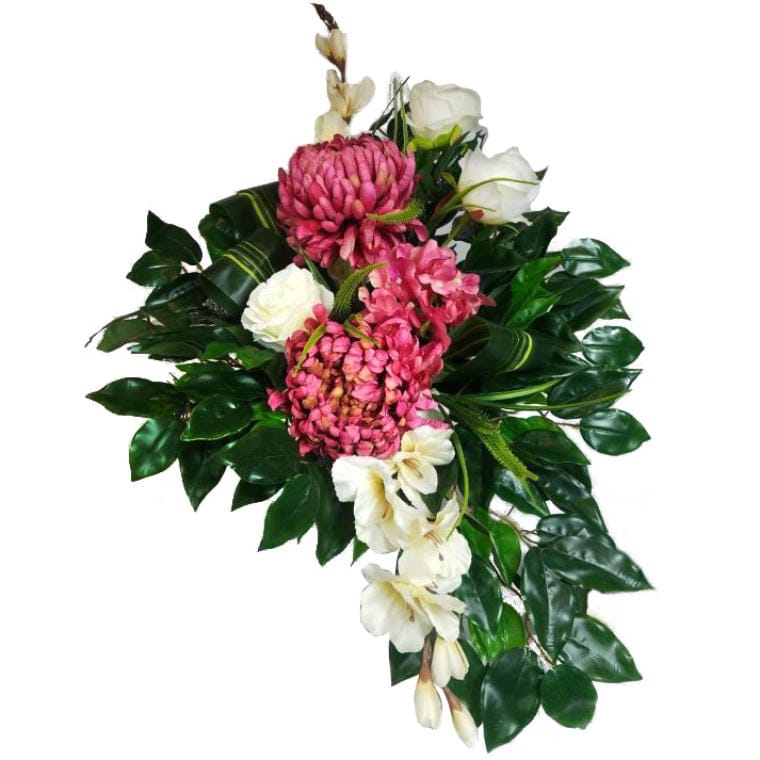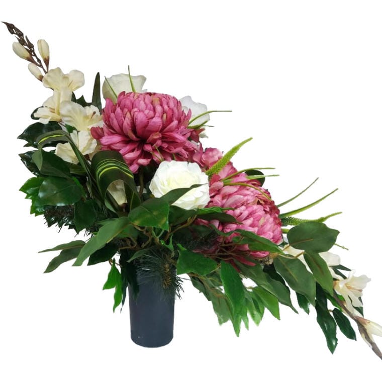 Kompozycja nagrobna „Wieczny Spokój” to elegancki i godny hołd dla bliskiej osoby. Starannie dobrane kwiaty oraz dodatki tworzą harmonijną całość, która wprowadza atmosferę spokoju i refleksji. W kompozycji znajdują się wysokiej jakości sztuczne kwiaty, które zachowują swój piękny wygląd przez długi czas, niezależnie od warunków atmosferycznych. Dominujące kolory oraz kształty zostały tak skomponowane, aby oddać szacunek i pamięć o zmarłym. Idealnie nadaje się do umieszczenia na grobie, zapewniając mu estetyczny i schludny wygląd. Kompozycja „Wieczny Spokój” to nie tylko dekoracja, ale również symbol pamięci i miłości, który będzie towarzyszyć bliskim w trudnych chwilach.