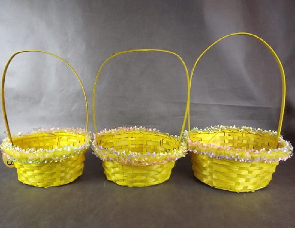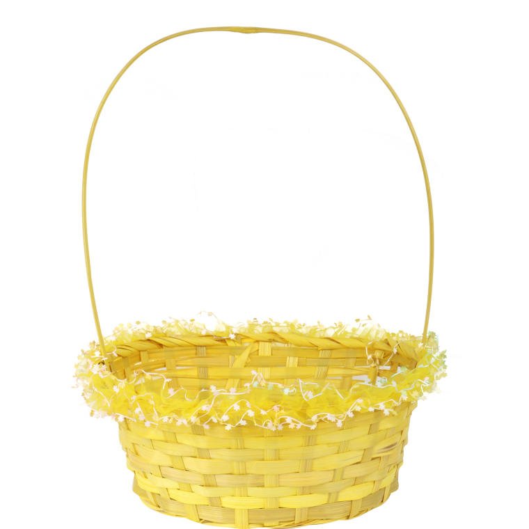 Koszyczek do święconki wykończony tiulową falbanką z kwiatkami 29x24x40 cm