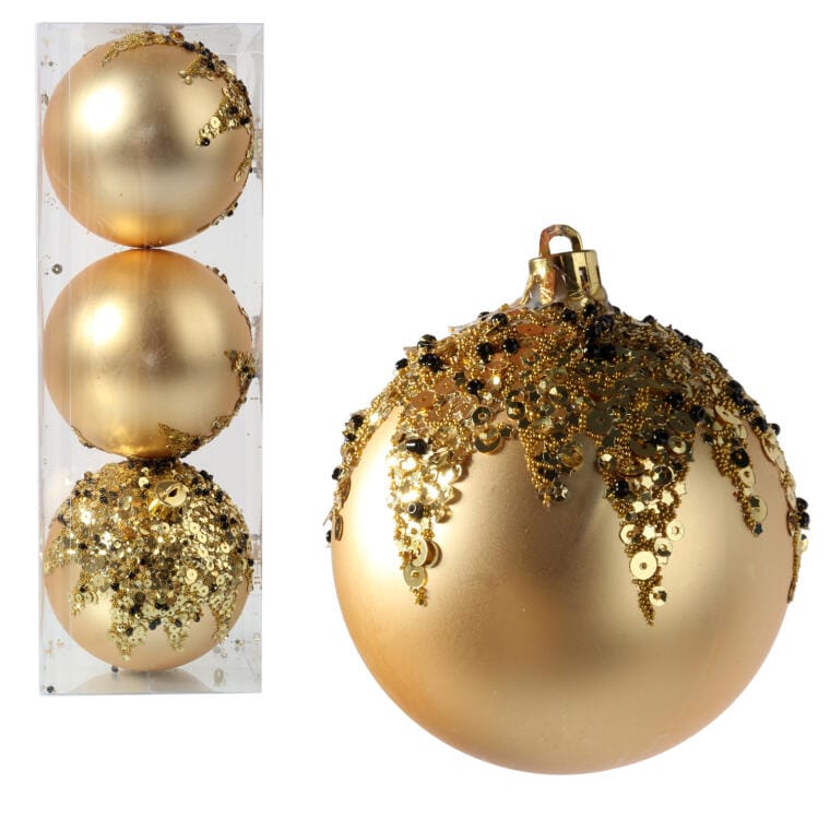 Kpl. 3 bombek plastikowych 8cm złote z cekinami