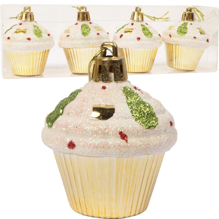 Dodaj odrobinę słodkiego uroku do swojej świątecznej dekoracji dzięki zestawowi 4 bombek w kształcie babeczek. Te urocze, plastikowe bombki o wielkości 4.5 cm, wykończone w eleganckim złotym kolorze, wprowadzą radosny akcent do każdej choinki, a ich wyjątkowy kształt z pewnością przyciągnie wzrok wszystkich gości. Idealnie nadają się do tworzenia oryginalnych kompozycji świątecznych oraz jako dodatek do girland czy wieńców. Wykonane z trwałego materiału, są lekkie i odporne na uszkodzenia, co sprawia, że można je z łatwością zawiesić i cieszyć się ich blaskiem przez wiele lat. Ten zestaw bombek to doskonały sposób na wzbogacenie atmosfery świąt i stworzenie niezapomnianych wspomnień!