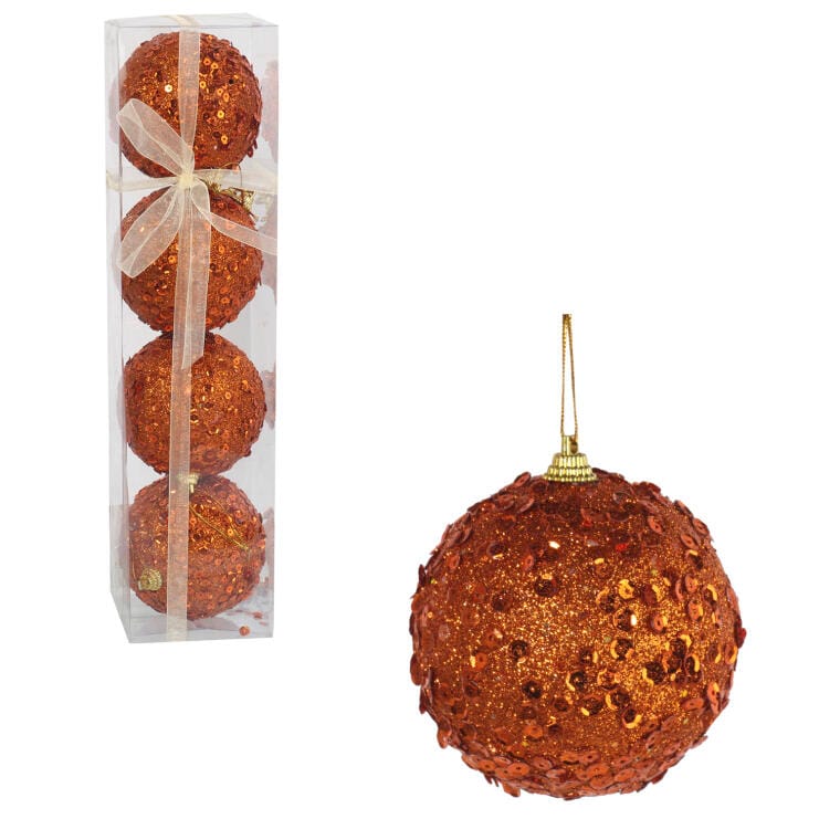 Kpl. 4 bombek styropianowych z koralikami 6 cm pomarańczowe