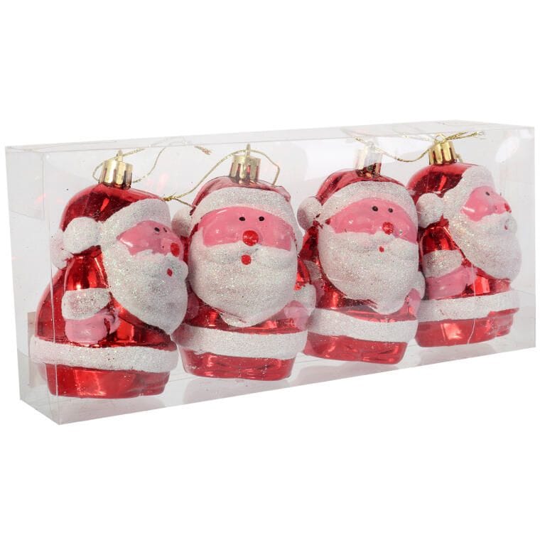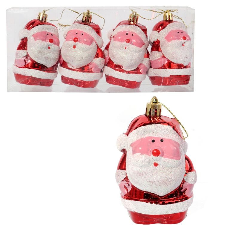 Komplet 4 plastikowych bombek w kształcie Mikołajów to idealna dekoracja świąteczna, która doskonale sprawdzi się na choinkach, girlandach oraz w stroikach, nadając każdemu wnętrzu wyjątkowy, świąteczny nastrój. Te eleganckie ozdoby, utrzymane w czerwonym kolorze, wprowadzą radosny klimat Bożego Narodzenia i doskonale uzupełnią inne świąteczne dekoracje. Wykonane z trwałego materiału, bombki o wysokości 9 cm są lekkie i nietłukące, co gwarantuje ich długą żywotność i możliwość wielokrotnego wykorzystania w kolejnych latach. Idealne na choinkę lub do ozdobienia innych świątecznych aranżacji.