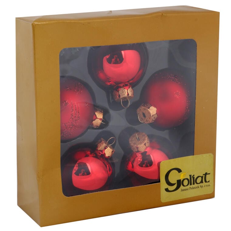 Kpl. 5 bombek szklanych 6 cm czerwone