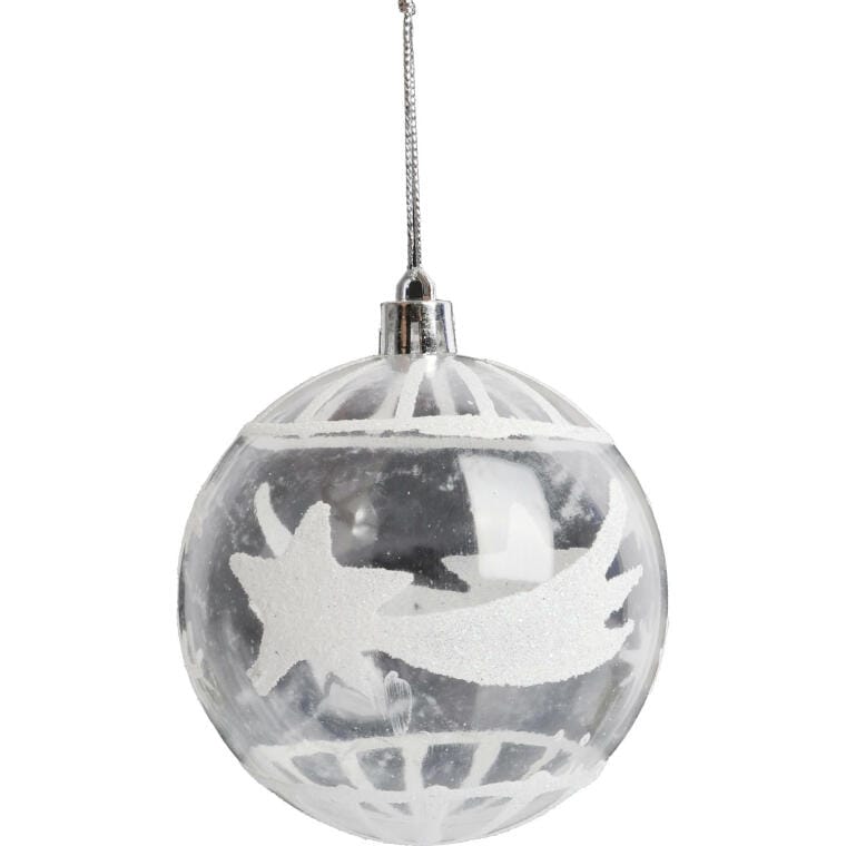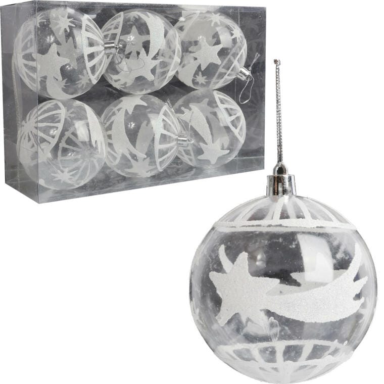 Kpl. 6 przezroczystych bombek plastikowych z dekorem 7 cm