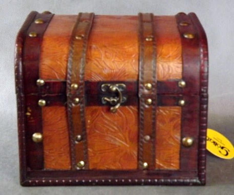 Mały kufer z wstawką w rudym kolorze i wyciśniętym wzorem to stylowy dodatek, który doskonale łączy funkcjonalność z elegancją. Wykonany z drewna i pokryty imitacją skóry, kufer emanuje trwałością oraz estetyką, co czyni go idealnym wyborem do różnych wnętrz. Jego kompaktowe wymiary 33x19x21 cm sprawiają, że świetnie sprawdzi się w przechowywaniu drobnych przedmiotów, takich jak biżuteria, akcesoria czy pamiątki. Zamykany na skobel, zapewnia bezpieczeństwo przechowywanych rzeczy, a uchwyty po bokach umożliwiają wygodne przenoszenie. Stylowy design z rudymi wstawkami dodaje mu ciepła i charakteru, a wyciśnięty wzór wprowadza elegancki akcent. Ten kufer to doskonały sposób na zorganizowanie przestrzeni, a jednocześnie piękna ozdoba, która wzbogaci wygląd Twojego wnętrza, nadając mu unikalny klimat i osobowość.