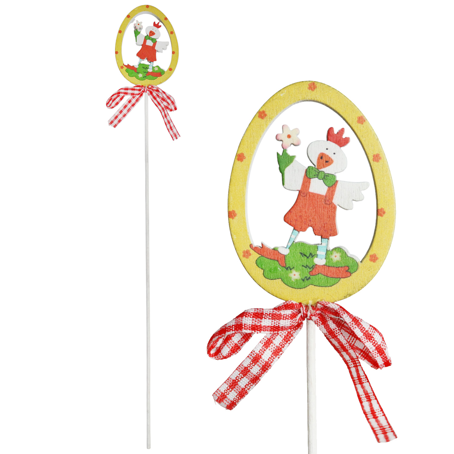 Kura wielkanocna w jajku na piku do dekoracji stroik ozdobny