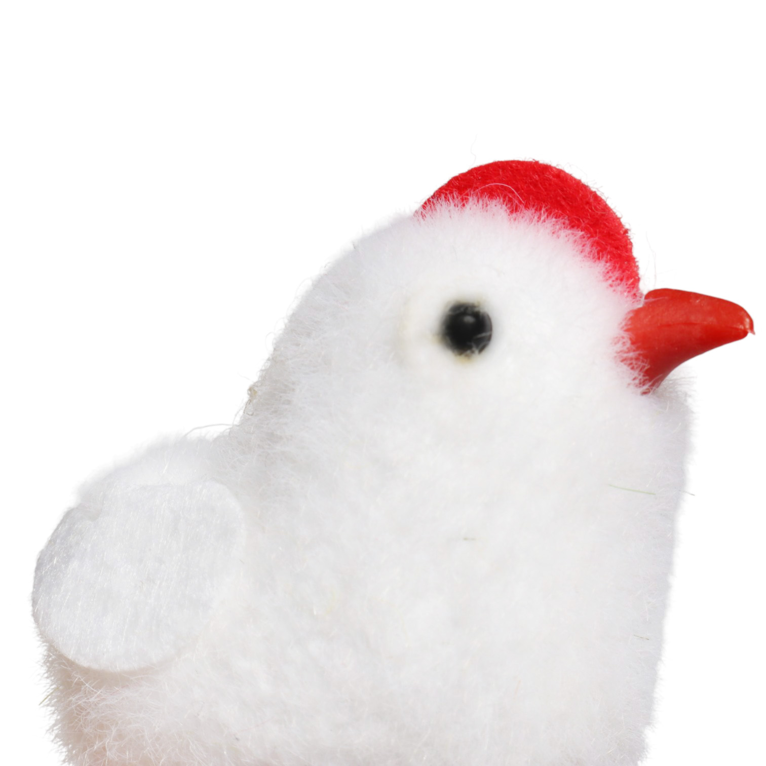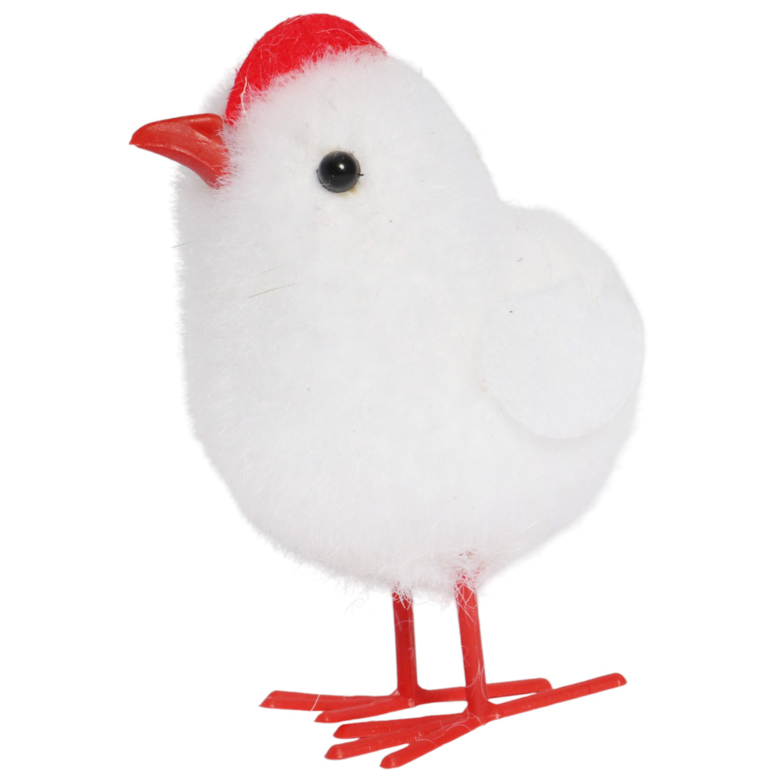 ✨Pokryty puszystym, białym materiałem, ma błyszczące oczka i czerwony dzióbek.