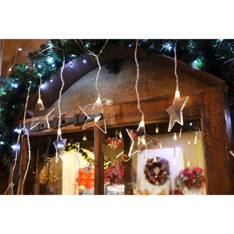 Kurtyna świetlna LED Gwiazdki na baterie z wyłącznikiem czasowym i przeźroczystym przewodem
