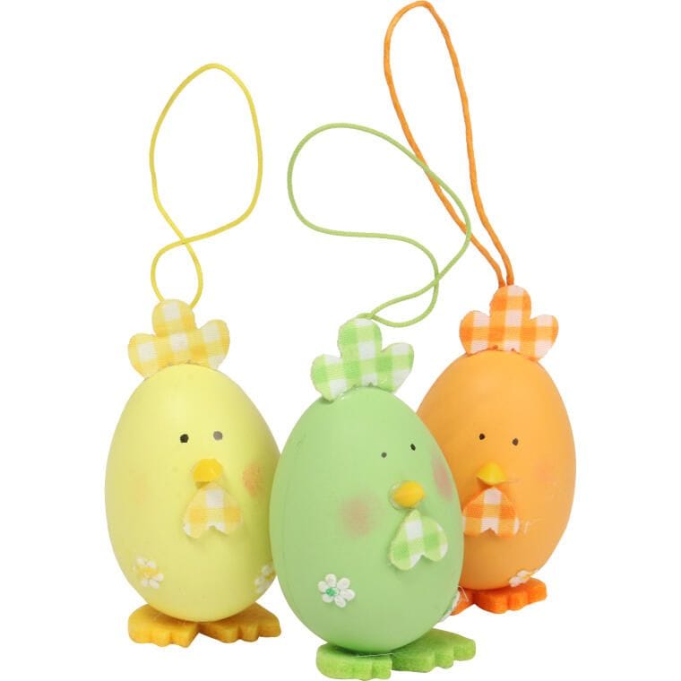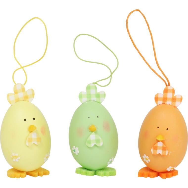 Komplet 3 zawieszek w kształcie kurek to doskonała dekoracja wielkanocna, która natychmiast wprowadza świąteczny nastrój do każdego wnętrza. Każda z kurek ma wysokość 6,5 cm i jest dostępna w trzech żywych kolorach: pomarańczowym, zielonym i żółtym, co sprawia, że zestaw jest niezwykle efektownym dodatkiem do każdej wielkanocnej aranżacji. Te urokliwe zawieszki nie tylko udekorują Twoje drzewko wielkanocne, ale także będą znakomitym akcentem na stołach, w oknie czy jako element wiosennych kompozycji. Wykonane z wysokiej jakości materiałów, kurki zachwycają swoją precyzyjnie dopracowaną formą oraz trwałością. Idealne do tworzenia świątecznych ozdób oraz jako wyjątkowy element wiosennego wystroju. Ten zestaw 3 kurek-zawieszek jest doskonałym wyborem na Wielkanoc.