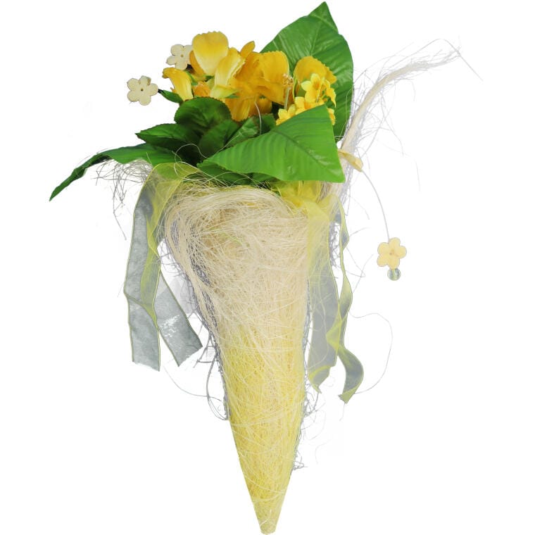 KWIATY W KOKONIE Z SIZALU DEKORACJA WIELKANOCNA DO POWIESZENIA ŻÓŁTA
