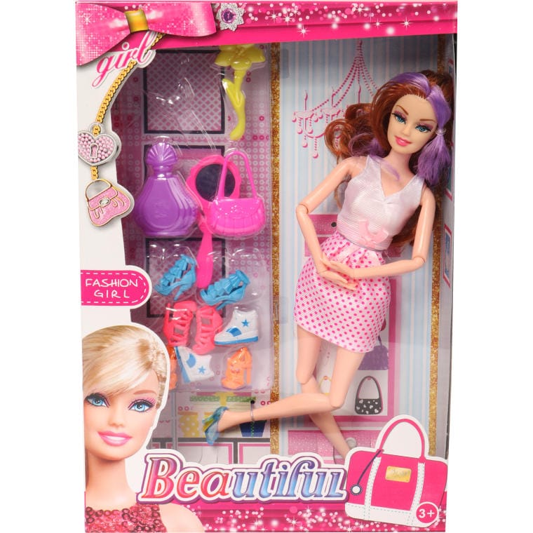 Lalka Modnisia z Akcesoriami: Torebka, Buty i Lusterko – Prezent dla Dziewczynki