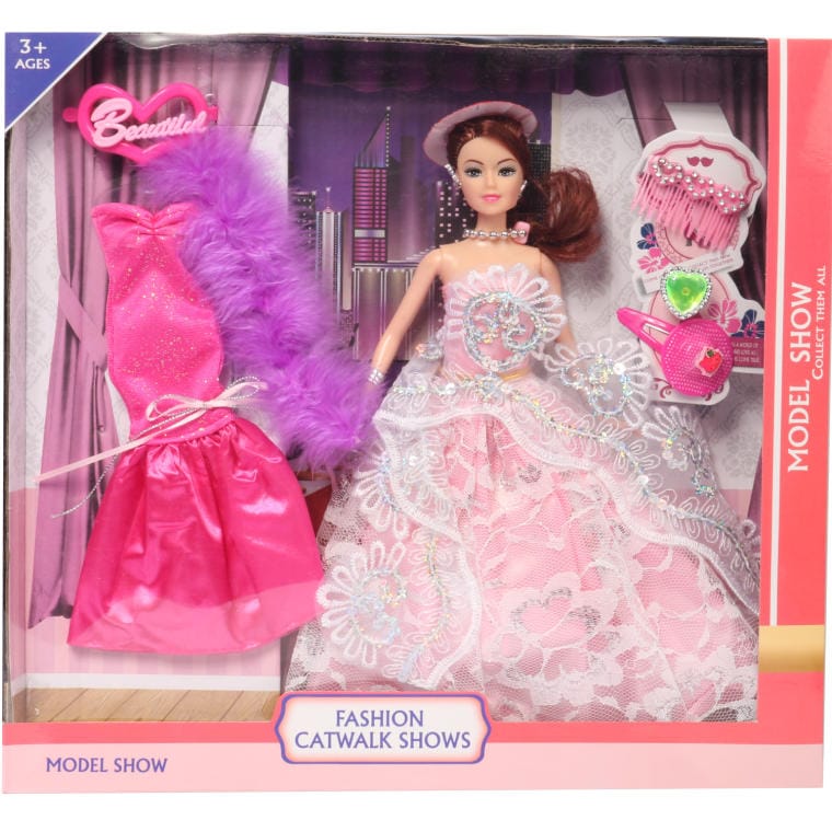 Lalka w sukni balowej w zestawie z akcesoriami do włosów, pierścionkiem, zapasową suknią
