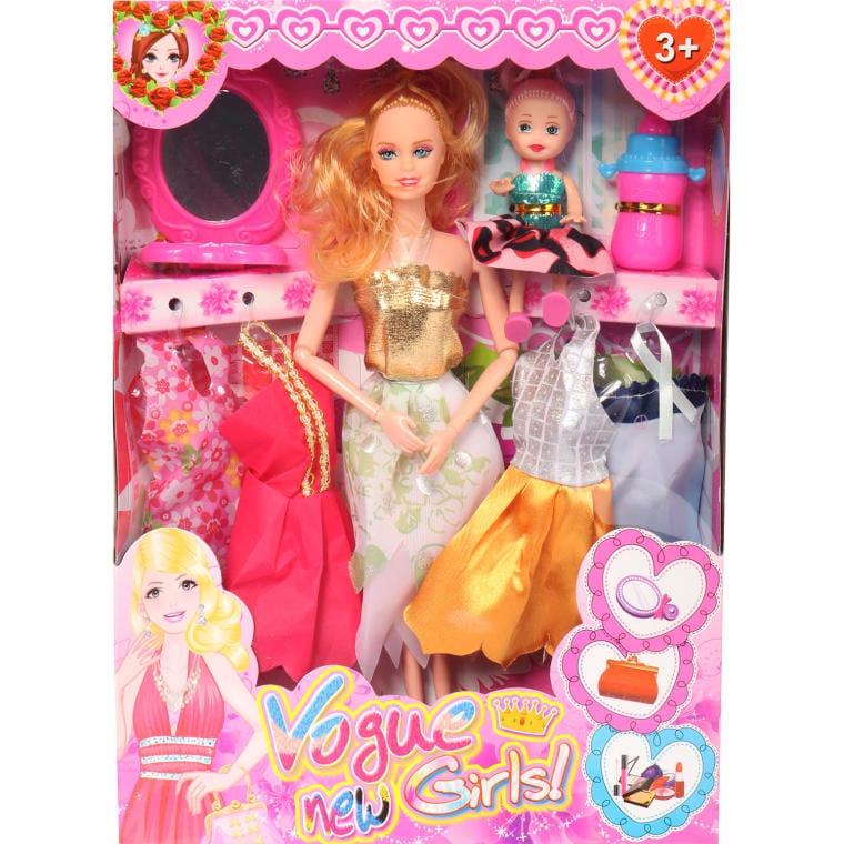 Lalka w zestawie z małą laleczką, buteleczką, ubrankami oraz akcesoriami do zabawy to świetny wybór na prezent dla dzieci od 3 roku życia. Cały komplet jest starannie zapakowany w kolorowy kartonik z okienkiem, co dodaje mu atrakcyjności i podkreśla prezentowy charakter. Zabawka rozwija kreatywność i wyobraźnię, pozwalając dzieciom na wiele godzin wciągającej zabawy. Wymiary zestawu to 32 x 23 cm.