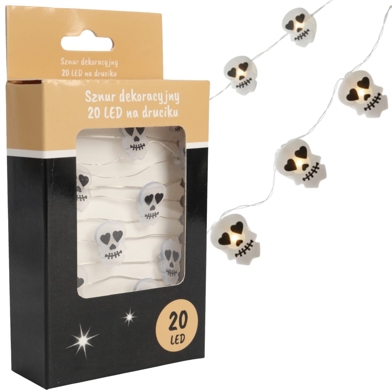 Lampki 20 LED z Czaszkami na Giętkim Druciku – Dekoracje na Baterie