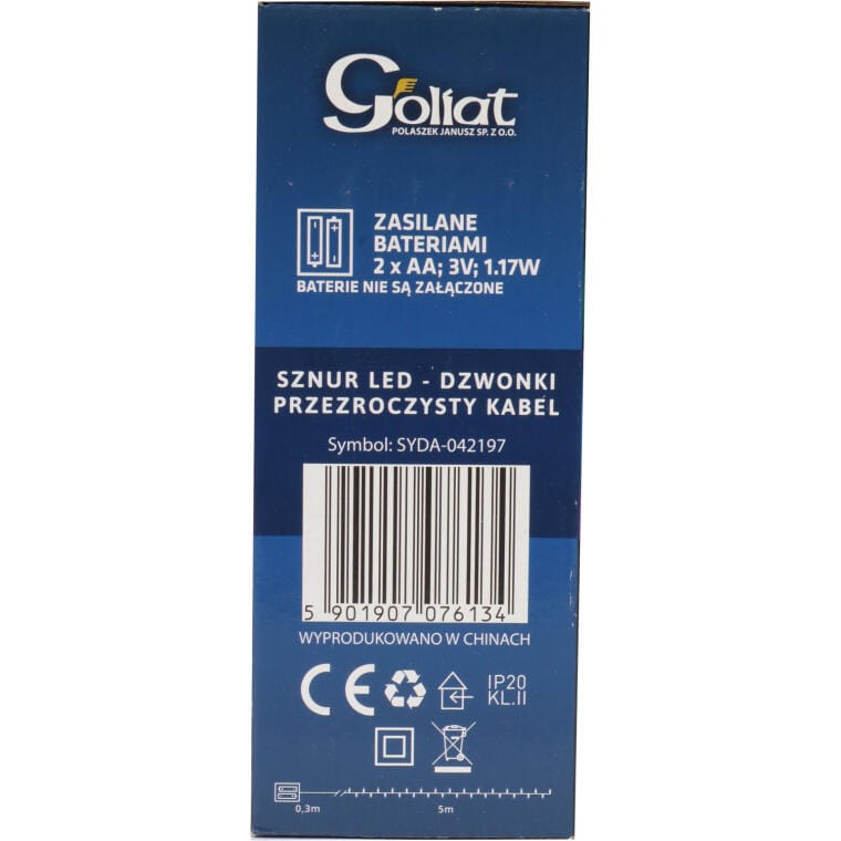 Lampki LED w kształcie dzwonków to doskonałe rozwiązanie do tworzenia bożonarodzeniowych dekoracji, które wprowadzą radosny nastrój do każdego wnętrza. Te efektowne lampki na przezroczystym przewodzie o długości 5 metrów, z dodatkowym 0,3 metra przeznaczonym do umiejscowienia baterii, idealnie prezentują się na choince, girlandach oraz w szklanych naczyniach, dodając im wyjątkowego uroku. Lampki LED rozmieszczone co 5 cm emitują wielokolorowe światło, które przyciąga wzrok i tworzy magiczną atmosferę świąteczną. Zasilane dwiema bateriami AA (niewłączonymi w zestawie), te dekoracyjne lampki są przeznaczone do użytku wewnętrznego, co czyni je bezpiecznym i estetycznym dodatkiem do Twojego domu. Dodaj nutę świątecznej magii do swojego otoczenia dzięki lampkom dzwonkom, które z pewnością zachwycą Twoich gości i uczynią każdy moment niezapomnianym.