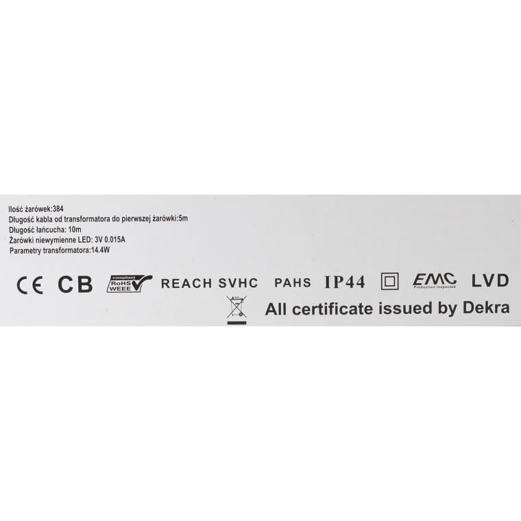 Zestaw 384 żarówek LED o łącznej długości łańcucha wynoszącej 10 metrów to idealne rozwiązanie do tworzenia magicznej atmosfery w Twoim wnętrzu. Kabel o długości 5 metrów od zasilacza do pierwszej lampki umożliwia elastyczne umiejscowienie dekoracji. Wysoka jakość wykonania gwarantuje wyjątkową trwałość i długowieczność tych lamp, co czyni je doskonałym wyborem na wiele sezonów. Czarny kabelek subtelnie wkomponowuje się w otoczenie, a barwa świecenia w postaci jasnej, zimnej bieli nadaje efektowny i elegancki wygląd. Te lampki LED doskonale rozświetlą przestrzeń, tworząc niezapomniany klimat, szczególnie podczas świąt Bożego Narodzenia, kiedy to oświetlenie staje się nieodłącznym elementem dekoracyjnym. Wybierz nasz zestaw żarówek LED, aby wzbogacić swoje aranżacje i cieszyć się pięknym, świątecznym blaskiem w każdym zakątku domu.