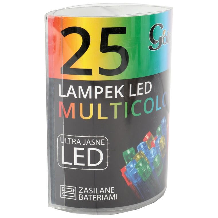 Lampki choinkowe LED Multikolor na baterie – 25 sztuk, do użytku wewnętrznego