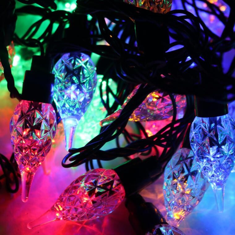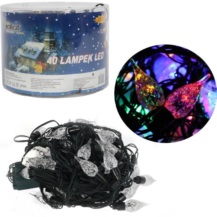 Lampki Choinkowe z Multikolorowymi LED Świeczkami na Zielonym Przewodzie, 40 sztuk, Zasilanie Sieciowe, z 8 Funkcyjnym Programatorem