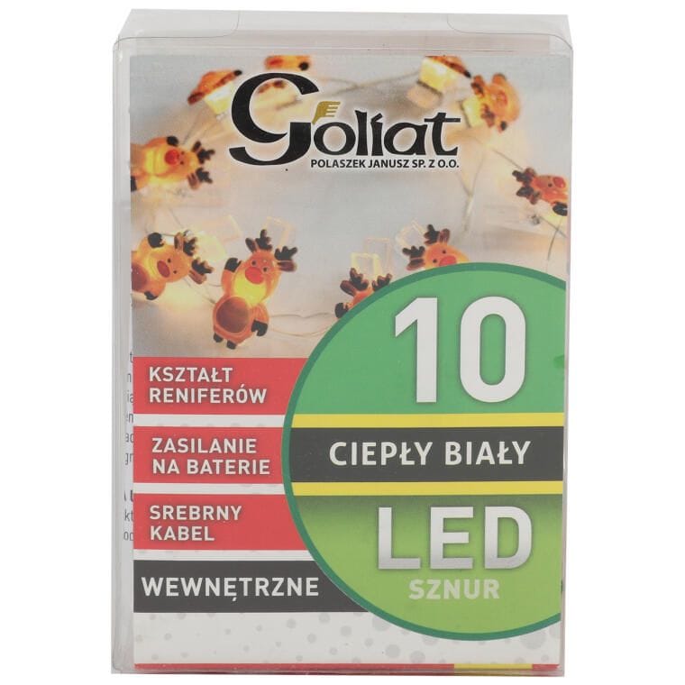 Lampki Świąteczne Reniferki LED na Klamerkach 10 Sztuk, Brązowe, Zasilanie Bateryjne, Długość 130 cm