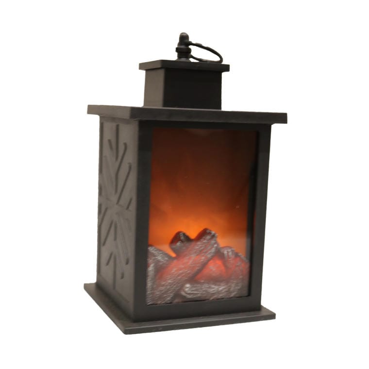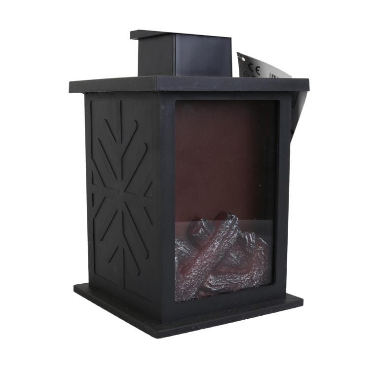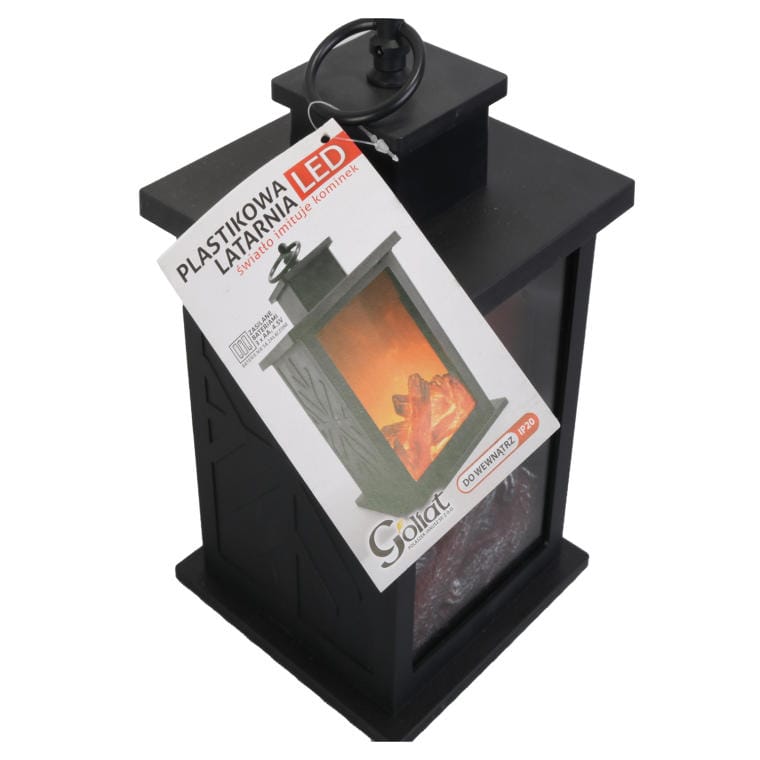 Latarnia LED na Baterie z Paleniskiem na Baterie – Ciepłe Pomarańczowe Światło, Plastik, Czarna