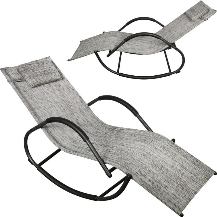 Leżak ogrodowy bujany kompaktowy, szary, regulowany z poduszką