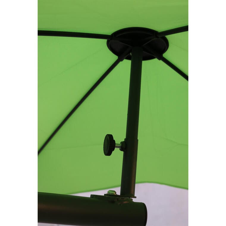 Leżak ogrodowy zielony z poduszką zagłówkiem i parasolem