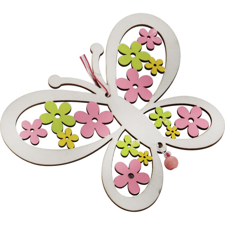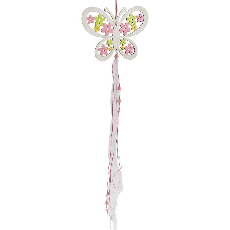 Motyl Wiosenno-Wielkanocny, Ażurowa Zawieszka Drewniana z Tasiemkami