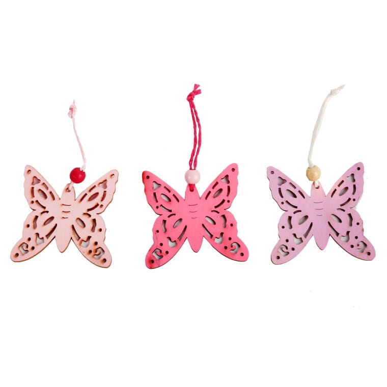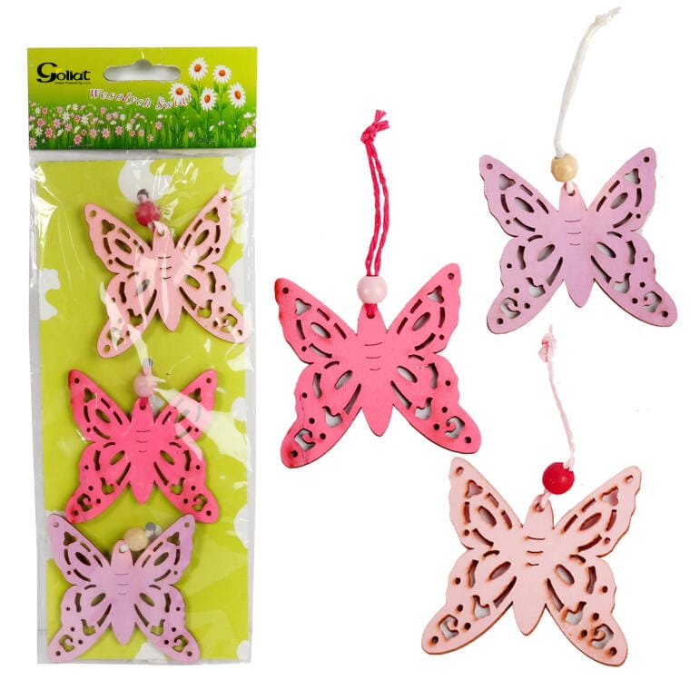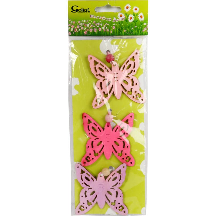 Motyle-zawieszki drewniane zestaw 3 sztuk różowe
