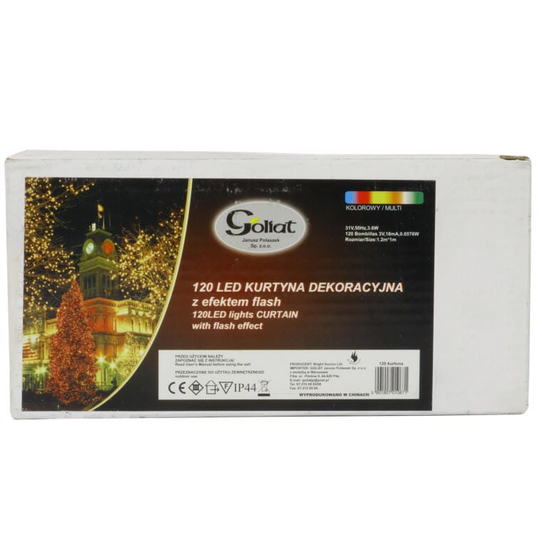 Dodaj blasku swoim świątecznym dekoracjom z wielobarwną kurtyną świetlną 120 LED. Ta efektowna ozdoba, o wymiarach 1,2 x 1 m, doskonale sprawdzi się jako dekoracja okna, ściany czy balkonu, wprowadzając kolorowy, świąteczny nastrój. Energooszczędne diody LED zapewniają żywe, intensywne barwy, które rozświetlą Twoje wnętrza. Kurtyna jest idealna do użytku wewnętrznego, a jej kompaktowy rozmiar sprawia, że pasuje zarówno do małych, jak i większych przestrzeni, tworząc magiczną atmosferę na święta.