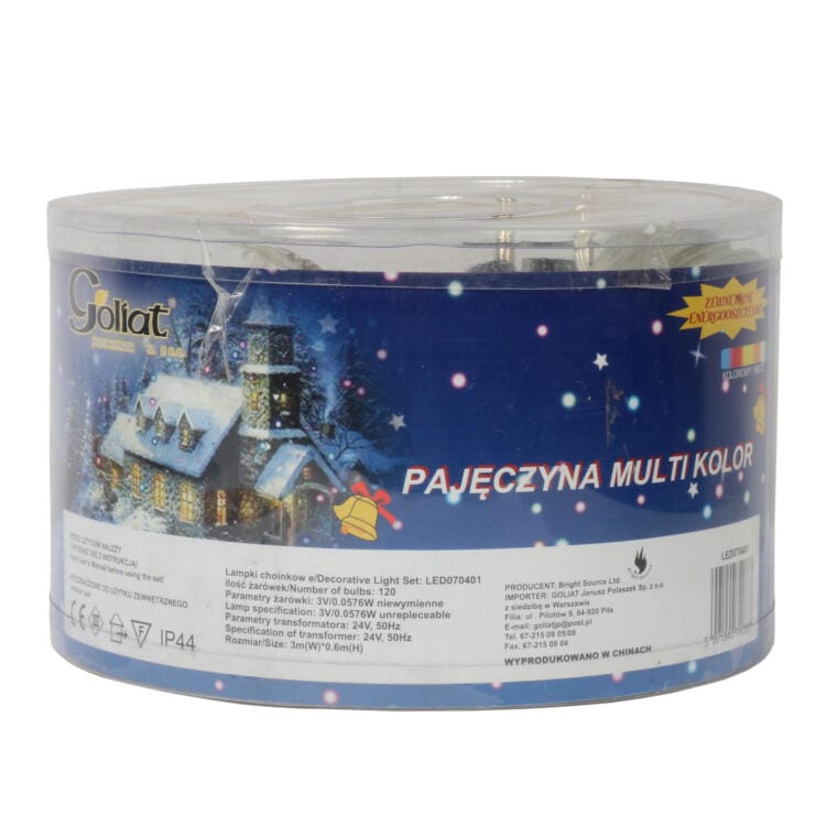 Kurtyna-pajęczyna z 120 diodami LED w multikolorze to doskonały sposób na stworzenie wyjątkowej atmosfery w Twoim domu. O wymiarach 3 m x 0,6 m, ta dekoracja świetlna idealnie nadaje się do oświetlenia ścian, okien czy balkonów, wprowadzając radosny nastrój na każdą okazję. Dzięki niskonapięciowym żarówkom o parametrach 3V/0,0576W, które są niewymienne, możesz cieszyć się długotrwałym działaniem bez obaw o ich wymianę. Kurtyna zasilana jest przez transformator o parametrach 24V, 50Hz, co zapewnia bezpieczeństwo użytkowania. Niech ta kolorowa kurtyna oświetli Twoje święta, przyjęcia czy inne ważne chwile, tworząc niezapomnianą, magiczną atmosferę!