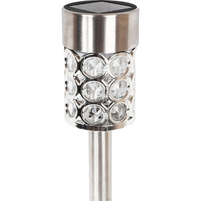 Przepiękna lampa solarna wykonana ze stali nierdzewnej oraz tworzywa sztucznego to produkt, który rozświetli Twój ogród na wiele kolorów. Żarówka LED zasilana baterią solarną ładowaną dzięki promieniom słonecznym (1x 1.2V AAA Ni-MH 300mAh) świeci na wiele pięknych kolorów. Wbij ją w ziemię, ustaw przełącznik na ON i ciesz się pięknym ogrodem! Wysokość ze szpikulcem to 37 cm, a bez szpikulca 27 cm, średnica wynosi 6 cm.