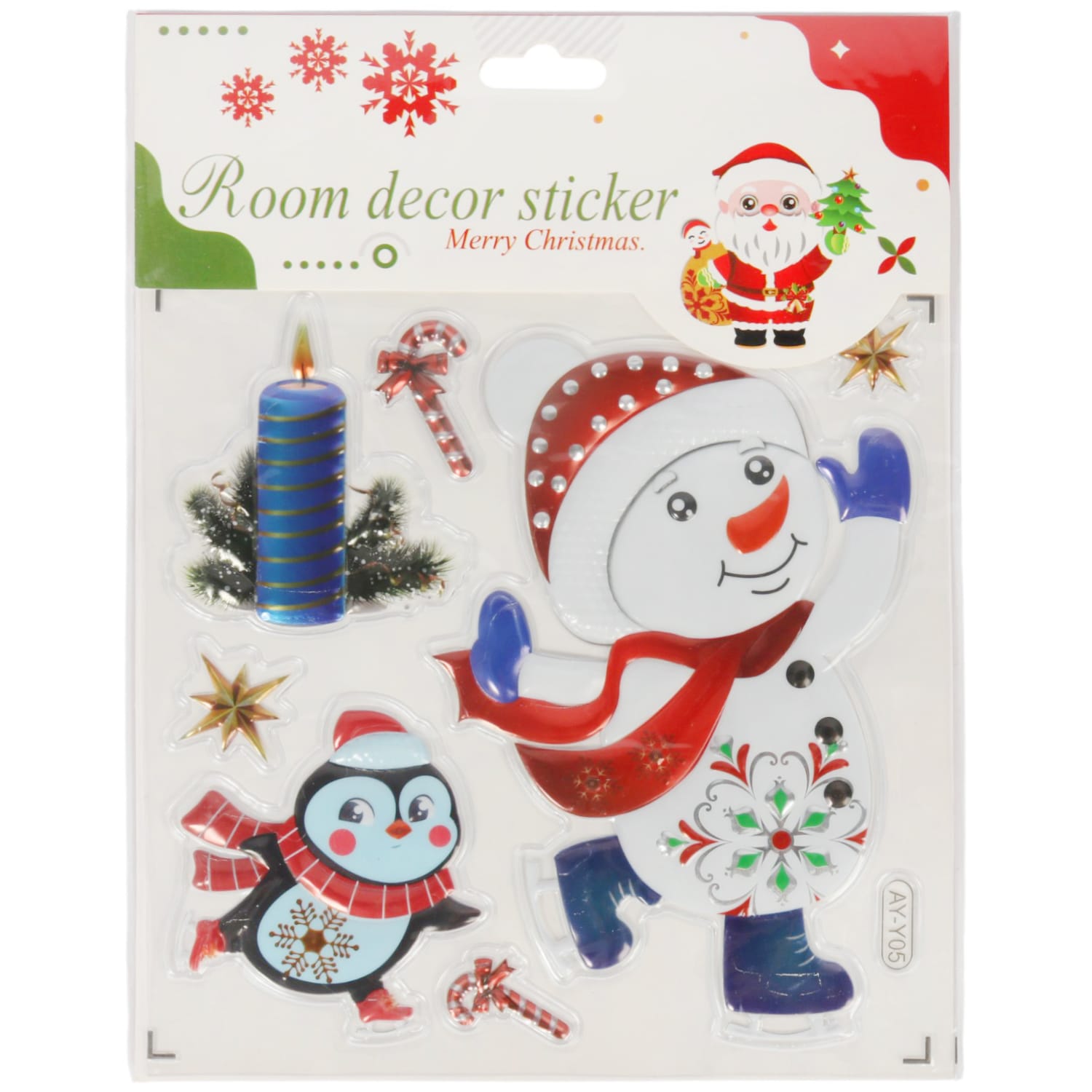 NAKLEJKI ŚWIĄTECZNE NA OKNO 3D DEKORACJA OZDOBA BAŁWAN+ PINGWIN
