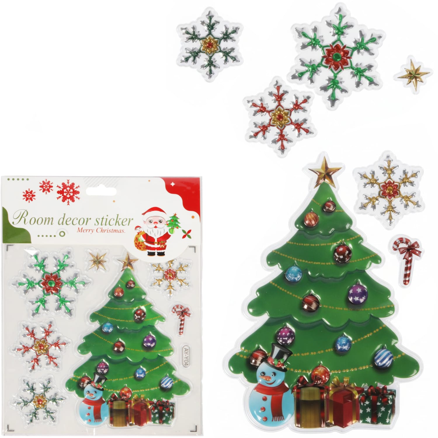 NAKLEJKI ŚWIĄTECZNE NA OKNO 3D DEKORACJA OZDOBA CHOINKA+ŚNIEŻYNKI
