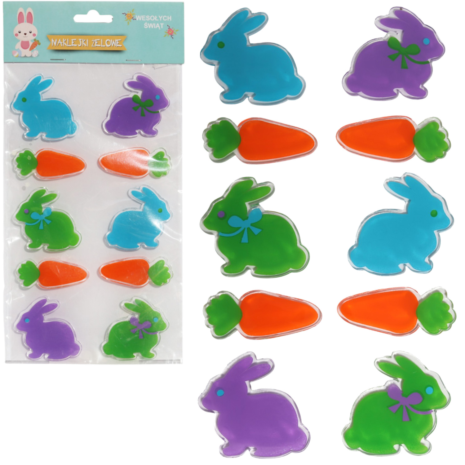 NAKLEJKI ŻELOWE SAMOPRZYLEPNE NA OKNO ZAJĄCE I MARCHEWKI 9 SZT