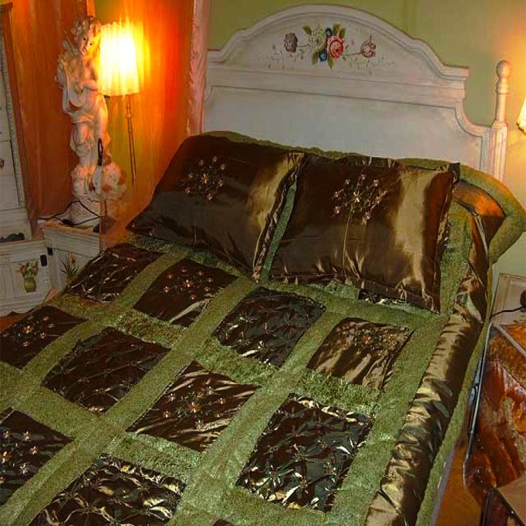 Wprowadź do swojej sypialni odrobinę elegancji i stylu z grubą narzutą na łóżko w głębokim kolorze oliwkowym. Ta starannie wykonana narzuta jest przeszywana satyną i ozdobiona subtelnymi detalami z buckle, co nadaje jej unikalny charakter. Haftowane wzory dodają całości wyjątkowego uroku, czyniąc narzutę nie tylko praktycznym, ale i dekoracyjnym elementem wystroju.