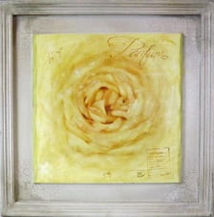 Obraz kwiatowy 'Żółta Róża’ z Efektem Postarzania, 38×38 cm – Część 1 z 4