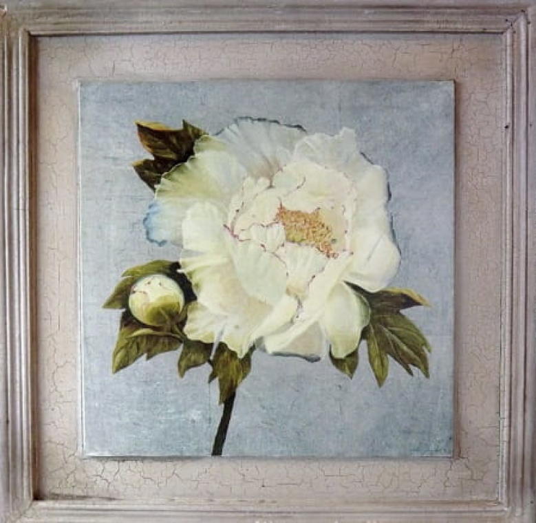 Obraz Postarzanej Białej Piwonii 38×38 cm – Kolekcja Kwiatów