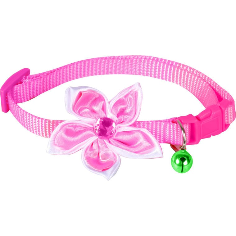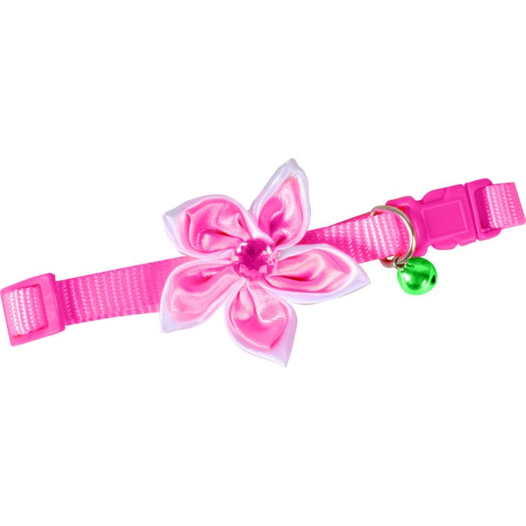 Obroża ciemno-różowa, z kwiatkiem i dzwoneczkiem