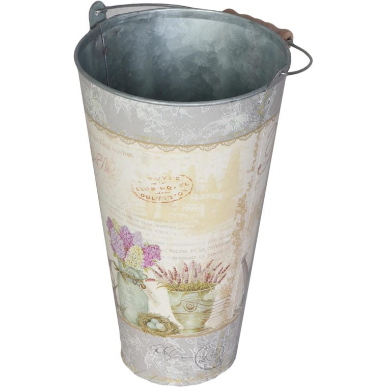 Ocynkowane Wiaderko w Stylu Prowansalskim z Motywem Kwiatowym